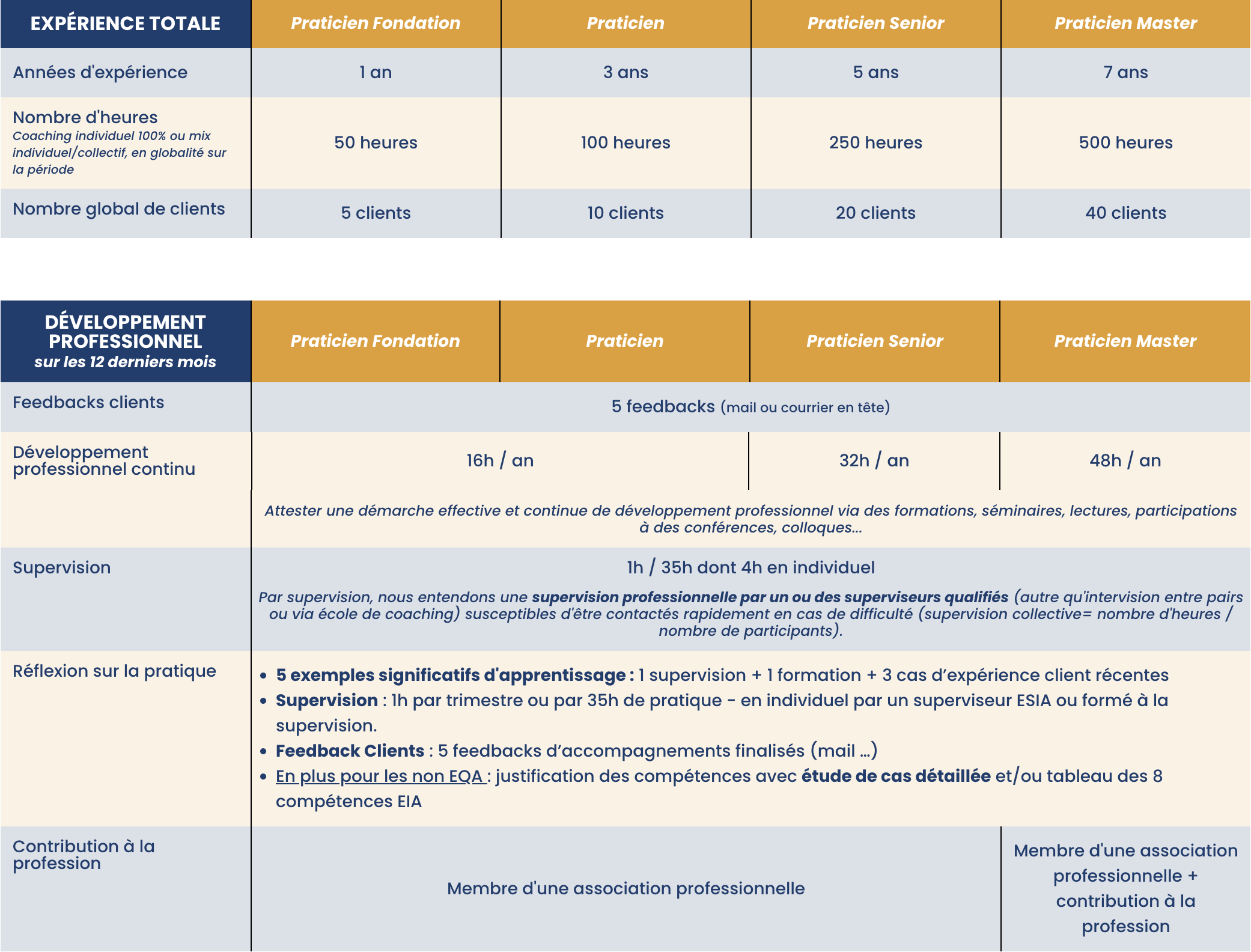 Si vous êtes coach certifié depuis moins de 2 ans par l’une des écoles accrédités EMCC Global (certificat EQA), vous bénéficiez d’un parcours simplifié. Mettez-vous en relation avec votre école qui s’occupera de vous indiquer la procédure à suivre.