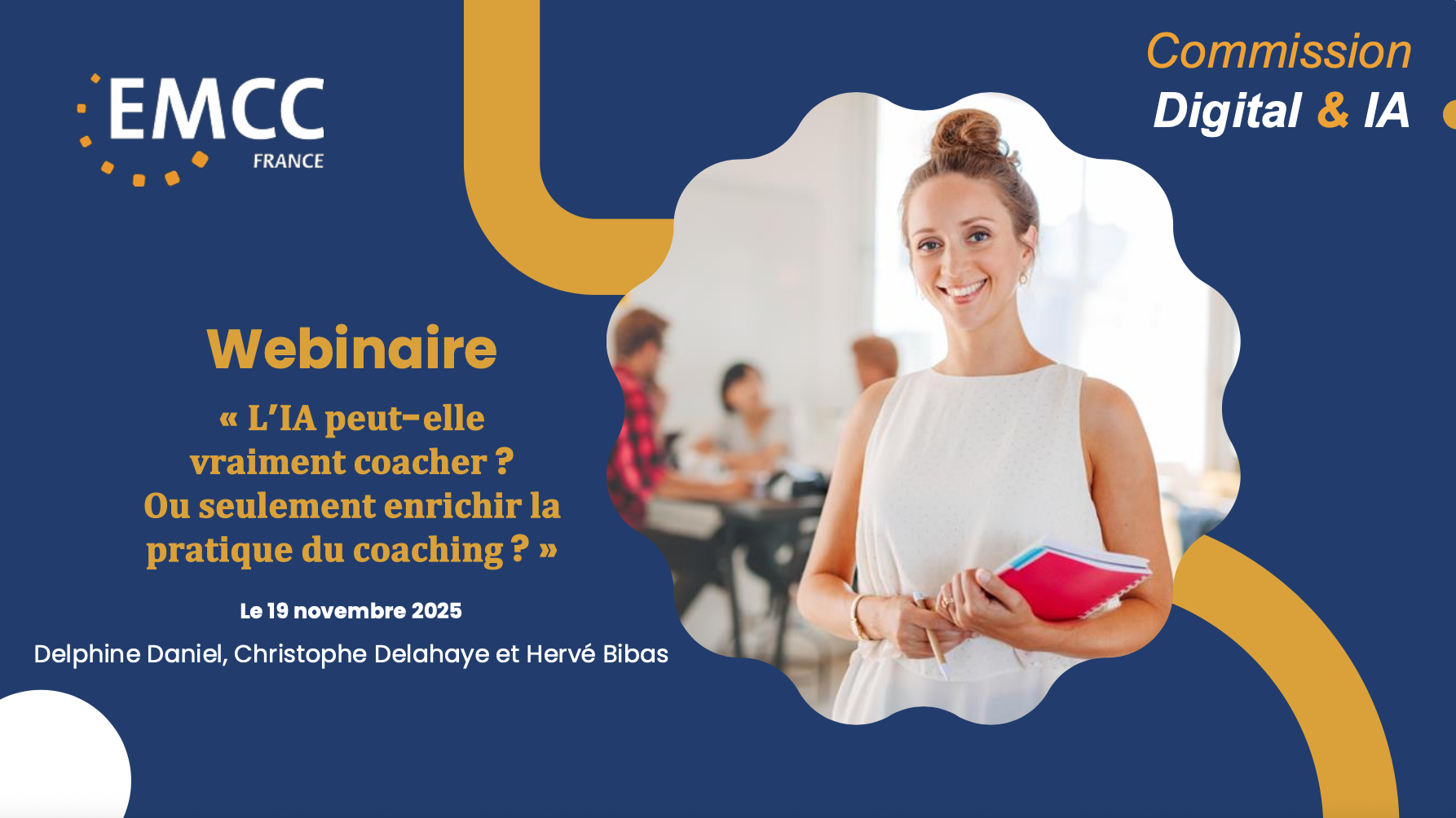 - Projets à venir en lien avec les autres commissions EMCC France : ateliers d’échanges de pratiques, Lab IA & Coaching, colloque national ouvert aux coachs et RH.